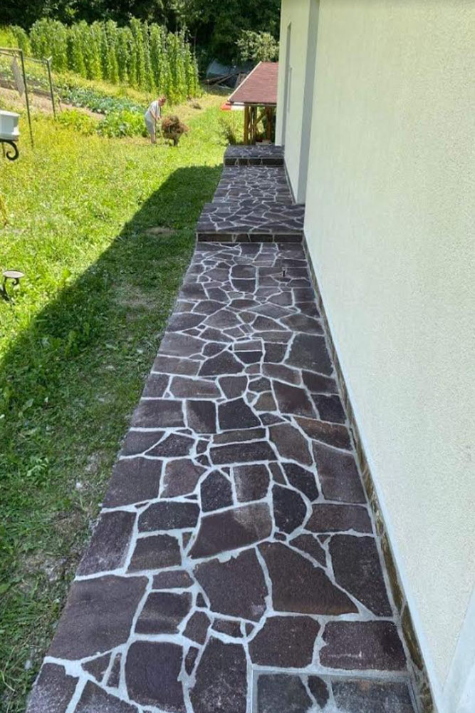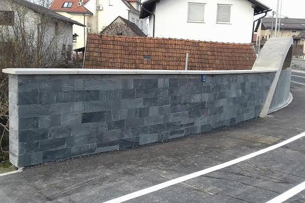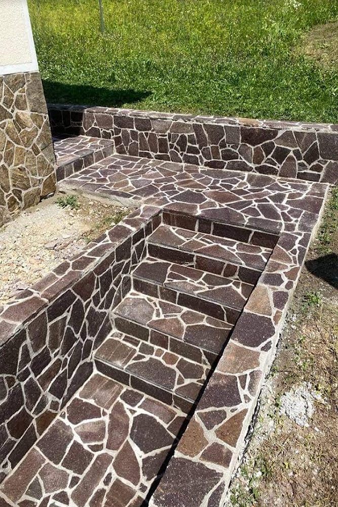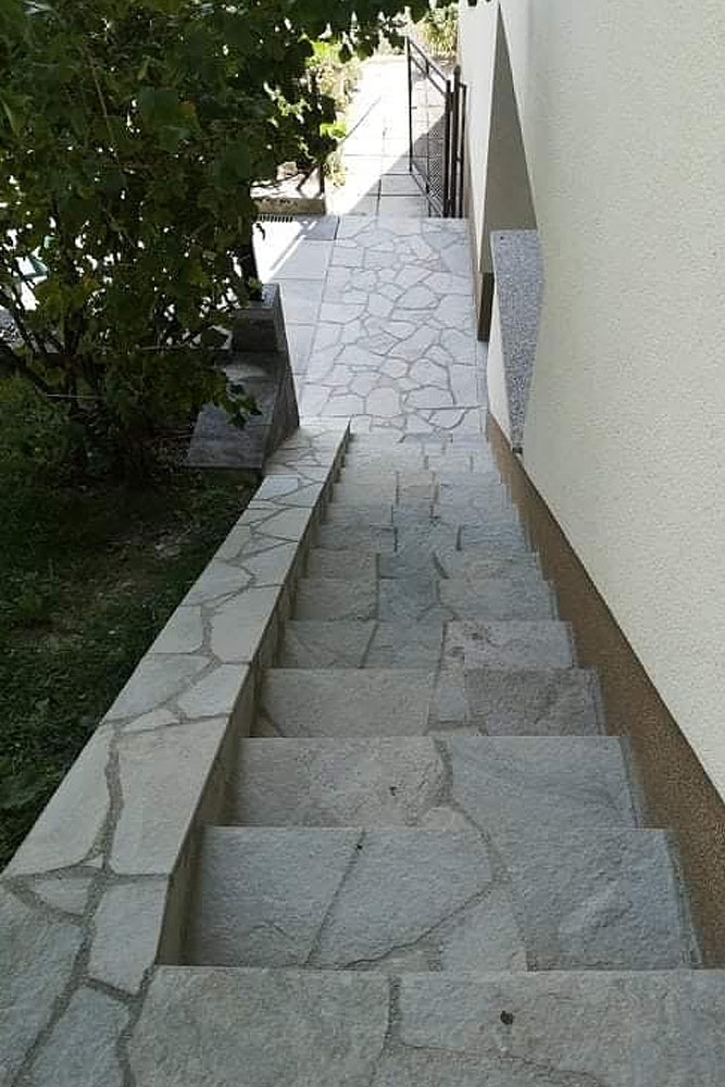 Rezani granit, debeline 1 do 2 cm, Š: 15 cm, D: 30 cm, v treh barvah. Cena: 25 eur m2 |